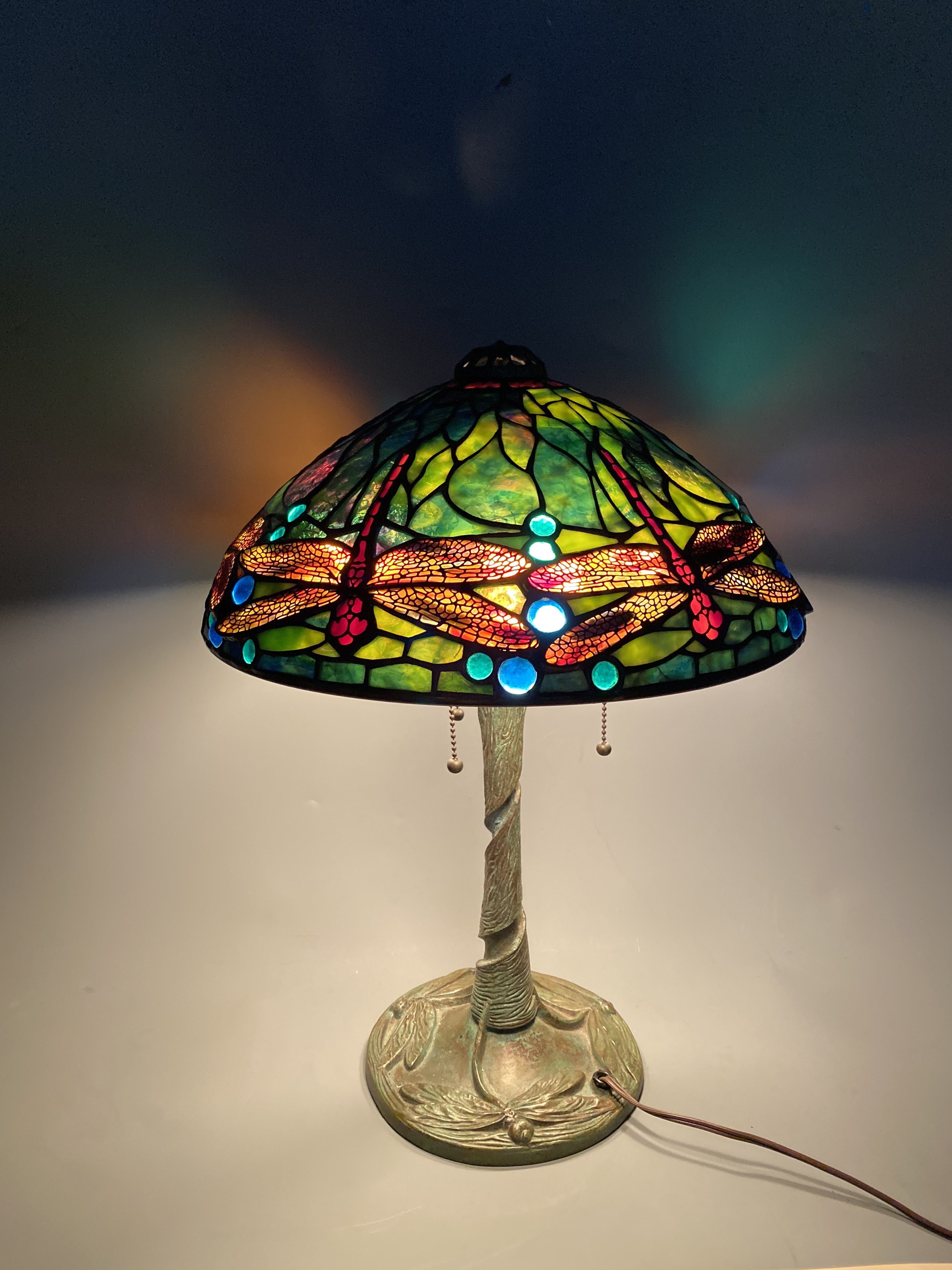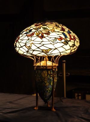 Tiffany工房の一番の収入源であった教会や一部の富豪の邸宅のステンドグラス窓製作の際の余剰のガラス再利用から出発した「Tiffany Lamp」